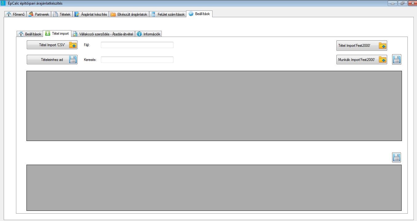 A programba lehetőség van külső forrásból származó tételek importálására. Ehhez egy CSV formátumú fájlra van szükség, ami tartalmazza a tétel nevét és a hozzá tartozó adatokat. Az előző szoftververzió ('Fest 2000') tételei és elkészült árajánlatai is importálhatóak a szoftverbe. Ebben az esetben a Fest2000 program mappáját kell betallózni a szoftveren keresztül, ezután a program átkonvertálja a régi program fájljait kompatibilis CSV formátumra. Így az előző szoftverben elkészült munkái és tétélei nem vesznek el.